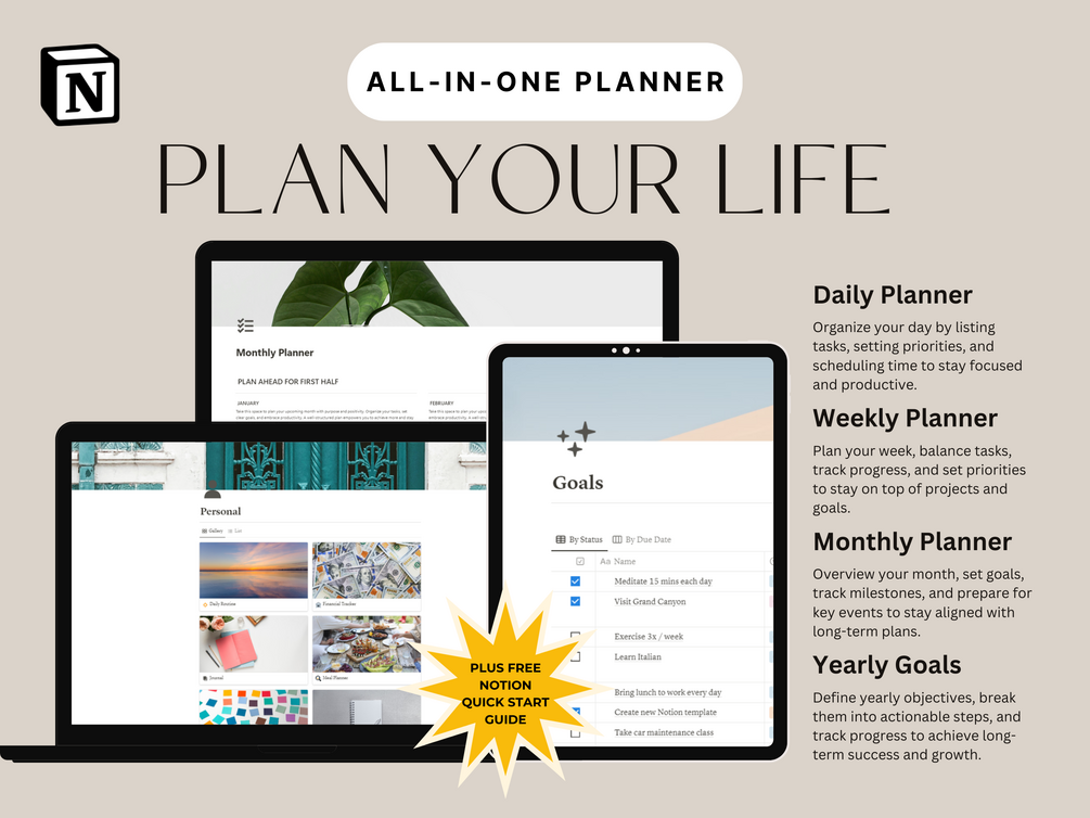 Aesthetic Life Planner Notion Template | Seamless Organization for Life, Goals & Daily Routines