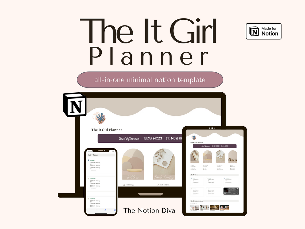 Step into your It Girl era with this all-in-one Notion planner, designed to help you stay organized, set goals, and live intentionally. This template includes over 20 planners and trackers to cover every aspect of your life: